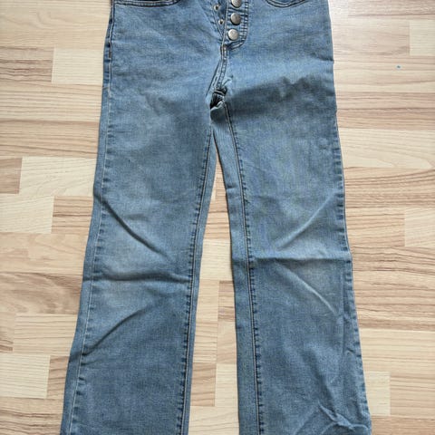 Bootcut jeans fra Molo i størrelse 140. Brugt af en pige. Pæn stand men med nogle svage streger på det ene bukseben.