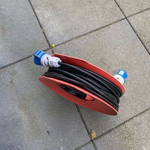 Lidt rust og ridser på rammen med kablet er helt og fint.