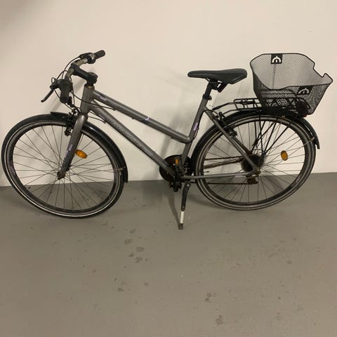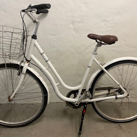 Køreklar damecykel med lys, lås og kurv