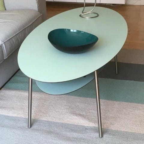 Top i matlakeret egefinér og ben i sort pulverlakeret metal.