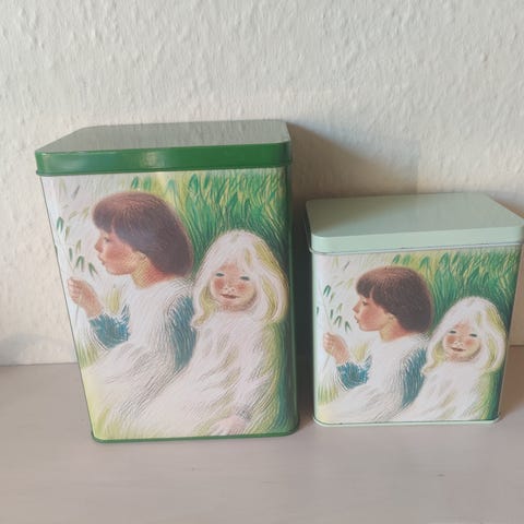 Tre smukke vintage dåser fra det hedengangne Daells Varehus. De har selvfølgelig lidt brugsspor, men overordnet rigtig fin stand! Den største har et lille tryk øverst ved låget. Ses på billedet. De passer ned i hinanden og er alle stemplet “Daells Varehus” på siden. Den største måler: H: 14 cm Ø: 10,5 cm. Sælges samlet til kr 250,-