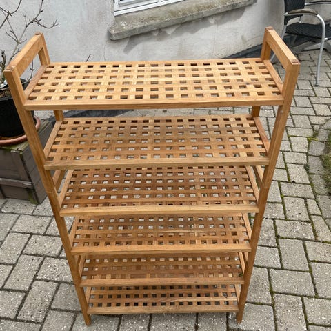 Flot velholdt sammenfoldelig plantereol i Akacietræ, med tre gode hylder.