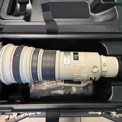 Canon EF 300mm f/2.8L IS USM II teleobjektiv i hvid. Fast teleobjektiv med brændvidde på 300mm og lysstærk maksimal blænde på f/2.8. Objektivet tilhører Canons L-serie og er udstyret med billedstabilisering (IS) og ultralydsmotor (USM) til hurtig og lydsvag autofokus. Velegnet til sports-, natur- og actionfotografering. Leveres med aftageligt stativfeste, modlysblænde og hårdt transportetui som vist på billederne. Original fod medfølger. Med EOS-R fatning kan det også anvendes til spejlløse kameraer fra Canon.