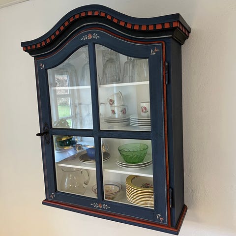 Sødt vintage vitrineskab til at hænge på væggen
