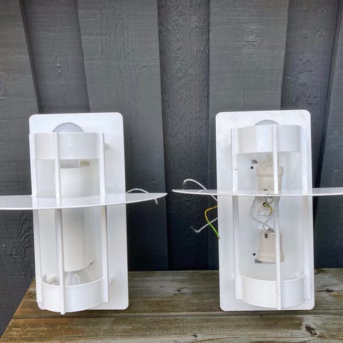 Claus Bonderup & Thorsten Thorup. Focus Quatro væglamper af hvidlakeret metal. Skærm af mat plexiglas.