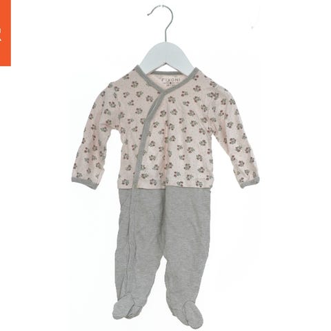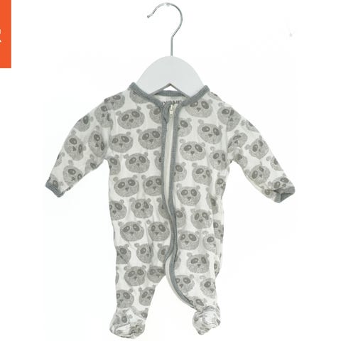 Heldragt til baby med lange ærmer og ben samt fødder. Dragten har en lynlås foran, der går fra halsen til benene, hvilket gør den nem at tage på og af. Materialet er lyserødt med et diskret mønster og dragten er lavet af et blødt stof, der passer til babyens sarte hud.