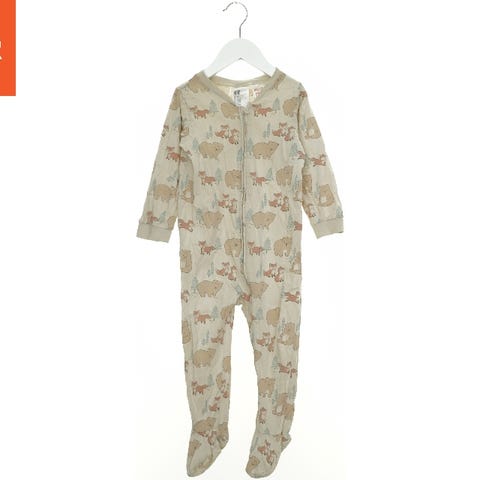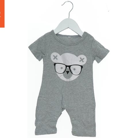 En cremefarvet heldragt med lange ærmer. Forsiden har et bjørnemotiv med øjne, næse og mund samt stofører syet på skulderområdet. Dragten har lukkemekanisme med trykknapper langs benene og ved skulderen for nem af- og påklædning.