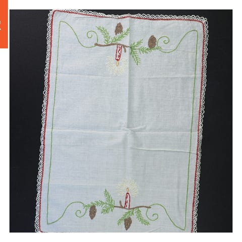 Retro Håndbroderet lysedug (str. 29 x. 29 cm)