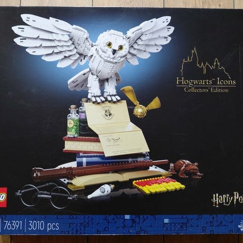 LEGO 76391 Hogwarts Icons Collectors' Edition er et 3.010-stykker Harry Potter-eksklusivt sæt med 3 minifigurer, udgivet i 2021. Det består af ikoniske Harry Potter-artikler, herunder Harrys tryllestav og briller, en chokoladefrø, eliksirbakke, Tom Riddles dagbog, Den Gyldne Snitch, og et tilpasseligt tørklæde, plus Hedwig og 3 gyldne minifigurer af Albus Dumbledore, Minerva McGonagall