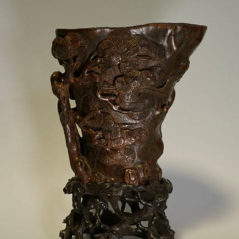 Stor udskåret bambus-æske i ottagonalt format fra det 19. til det 20. århundrede