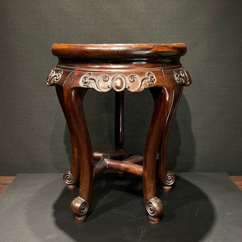 Dette er et udsøgt udskåret træskrivebordssmykke til en lærde; bestående af to dele (øverste og nederste) og ledsaget af dets originale base.