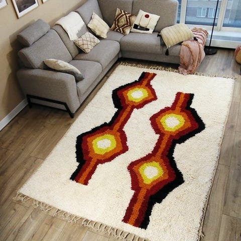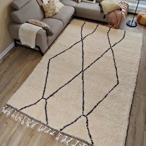 Mist jouw interieur ook karakter, maar weet je niet precies waar dat aan ligt? Jeg forstår dig. Mine tæpper løser dette problem. Tilfør varme, stil og autenticitet til dit hjem med dette håndknudede Berber-tæppe fra Atlasbjergene i Marokko.