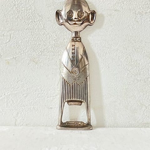 Flaskebeskytter, "Pierre the Sommelier", et mesterværk af italiensk design skabt af Aldo Colombo. En mustaschieret sommelier med en tastevin om halsen.