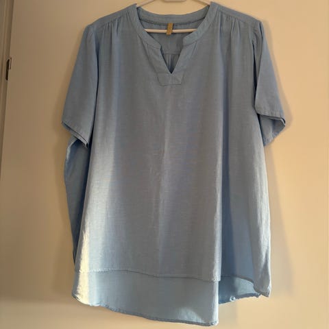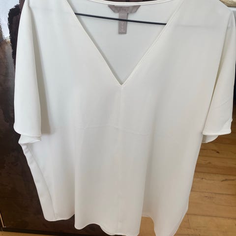 SHEIN hvid skjorte t- shirt str. 42/44. Længere bag til en for til. Er aldrig brugt.