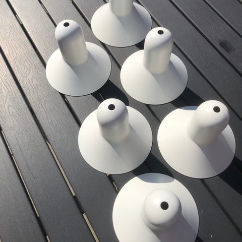 fra Holmegaard. De er i perfekt stand uden afslag og begge med den originale fatning. Diameter 21 cm.