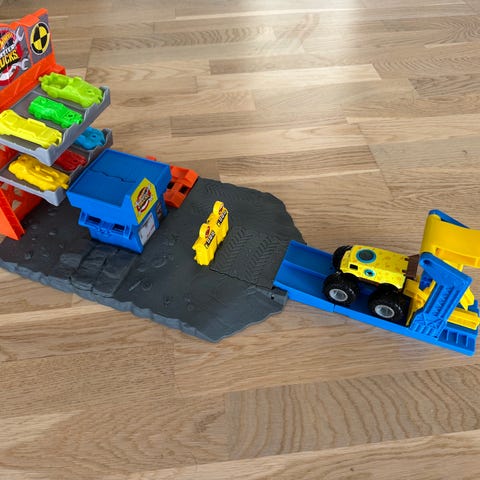 Hot Monster trucks den lyser i mørke. Der hører mange biler med til. De er købt seperat
