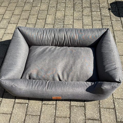 Buster memory foam hundeseng, ideelt til store hunde. Slidstærk materiale som er nemt at rengøre, tåler vaskemaskine og tørretumbler. Tilbyder hunden optimal senge komfort, reager på hundens kropstemperatur og former sig efter hundens krop. Brugt lidt over 1 år, i farven army grøn.