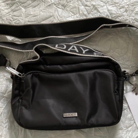 DAY ET crossbody taske til kvinde i sort plastmateriale. Tasken har justerbar skulderrem og lynlåslukning øverst. På forsiden er der en ekstra lomme med magnetlukning. Indvendigt har tasken lyst foer, en lynlåslomme og flere mindre åbne lommer til organisering af mindre genstande. Egnet til hverdag og brug til personlige ejendele som pung, telefon og nøgler.