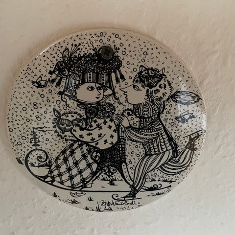 Porcelæn tallerkener med trykte børnemotiver i rød og sort på hvid bund. Motiverne viser legende børn i forskellige scener. Tallerkenerne er runde og egner sig til dekoration eller som små serverings- eller desserttallerkener. Sælges samlet som sæt.