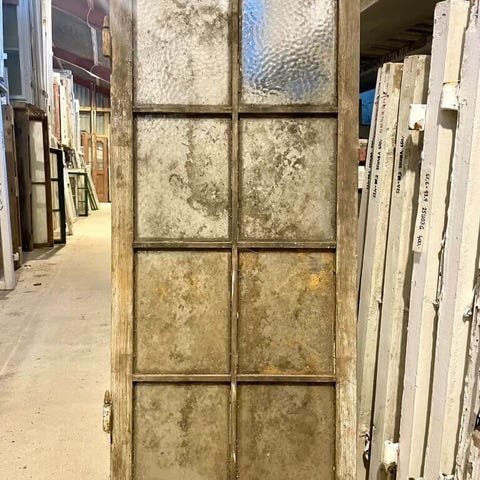 Antik 8-ruders vinduesramme m. blæst glas, B:55, H:114