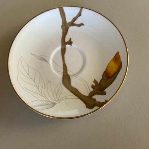 Royal Copenhagen Magnolia skål i porcelæn. Skålen er overvejende hvid med flerfarvet blomstermotiv og guldkant langs kanten. Velegnet til servering af fx dessert, morgenmad eller mindre anretninger. Serien Magnolia er kendetegnet ved sit dekorative blomstermønster på klassisk hvidt porcelæn.