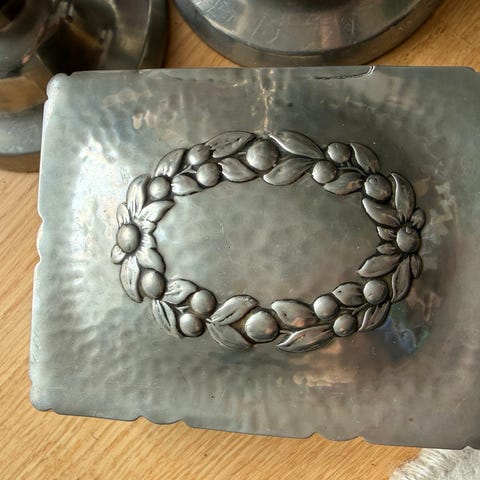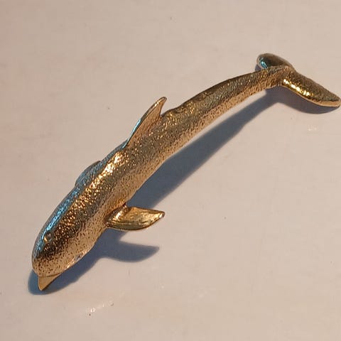 Armani smykkeskrin i form af en skildpadde. Skrinet er udført i metal med gylden finish og låg udformet som skjold med indlagte glasfelter i lyse nuancer. Indersiden er glat og egnet til opbevaring af små smykker eller andre små genstande. Velegnet som bord- eller kommodeboks til organiseret opbevaring.Brass Turtle With Mother Of Pearl 5.5Inch Tortoise Trinket Box...Et stykke af skallen er faldet af.