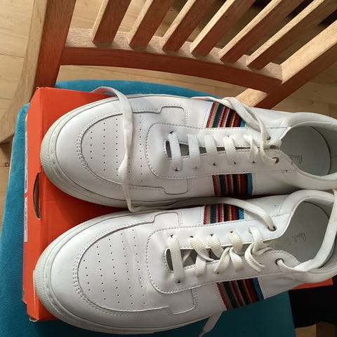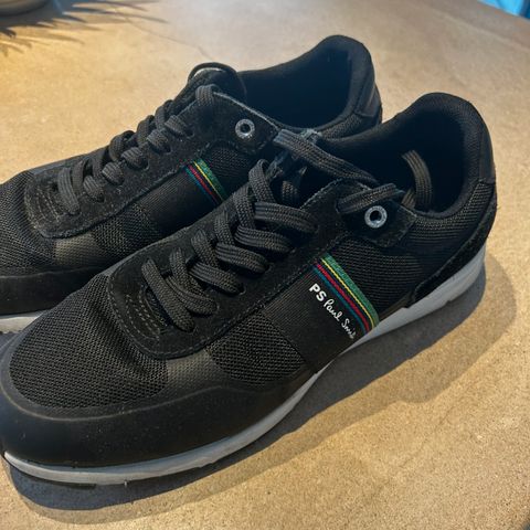 Sneakers, Paul Smith, str. 41, Skind, Næsten som ny, Hvide med Paul Smith logo som små huller i skind. Virkelig flot design. Lidt små i størrelsen. 1 1/2 år gamle og i fin stand. Dog enkelte små skrammer i skind på snuderne - se billeder. IKKE forsøgt fjernet med hvid skocreme. Derfor den lave pris.