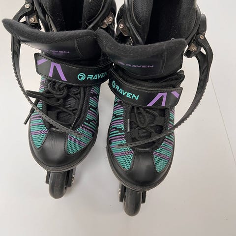Lilla/grøn - Rio Roller str. 5/38 med sikkerhedsudstyr til knæ, albue og håndled.
