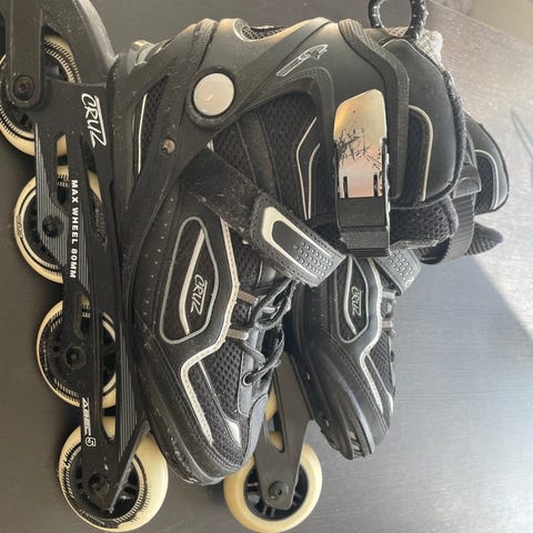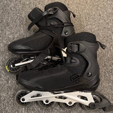rulleskøjter i forskellige modeller og farver, herunder både inliners og klassiske side-by-side