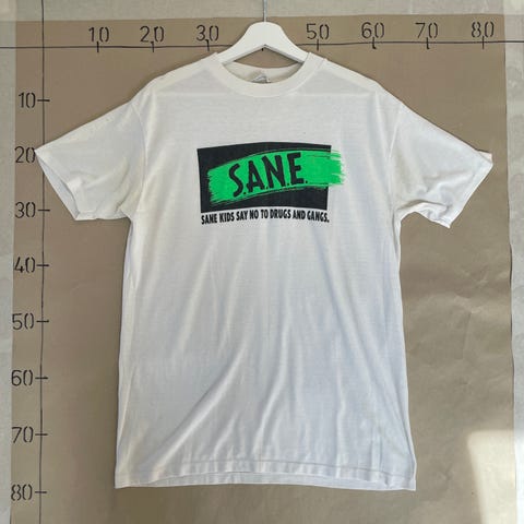 Hvid Vintage 90’Er Grafisk Printet S.A.N.E/D.A.R.E Copy T-Shirt