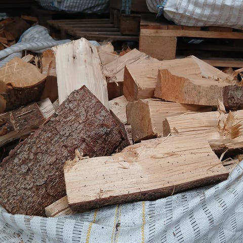 Gran, 10 rm, Tørt gran savet i 25 cm, pakket i 25 L sække. 30 kr pr. Sæk og 4 for 100 kr.