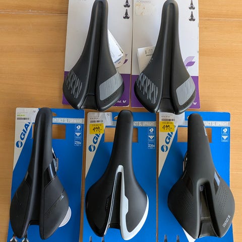 Blandet parti cykelsadler i sort med forskellige former og udskæringer.