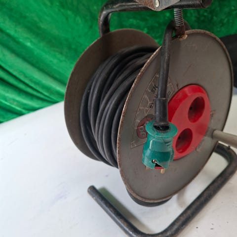 NKT Ledning kabeltromle med industristikprop. Kabeltromlen har blå plastspole og er forsynet med rød industristikprop i den ene ende og flerpolet stik i den anden ende. Velegnet til midlertidige elinstallationer, f.eks. på værksted eller byggeplads, hvor der er behov for forlængerledning med industristikforbindelse. Fast pris , sendes ikke .