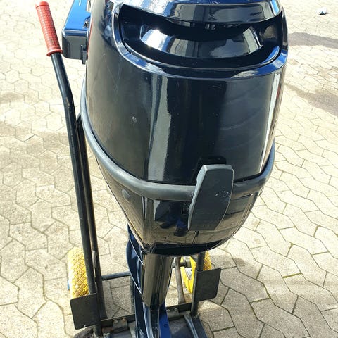 Motoren med langt ben er fra 2023 og meger lidt brugt på en sejljolle. Motoren er derfor i fin stand. En ekstern 12 l tank og pumpe kan medfølge - har kun brugt denne til motoren, men der er selvsagt også en intern tank indbygget hvilket ses på det ene billede.