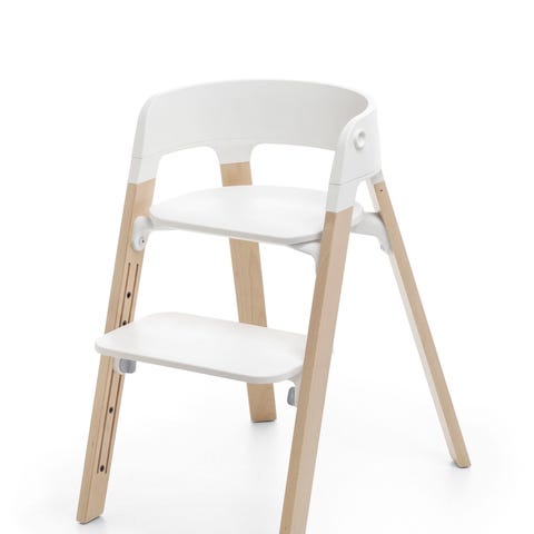 Steps højstol kan bruges fra ca 6 måneder til 10 år. Stolen har et rummeligt, støttende sæde med dybde- og højdejusterbart ryglæn og en 5-punktssele. Bordet/bakken tåler opvaskemaskine.