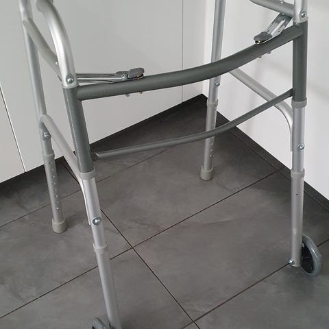 Med dette smarte foldbare gangstativ med skridsikre håndtag og aluminiumshjul, får du masser af støtte og stabilitet, når du er ude og gå. Gangstativet kan foldes sammen, så det er nemt at have med under transport.