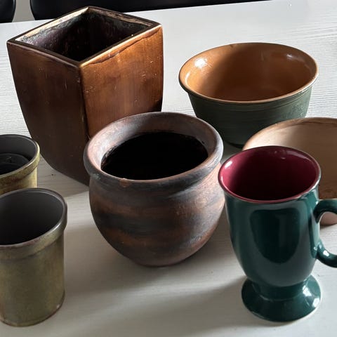 Porcelæn, skåle/urtepotteskjulere/hurricane, idet der er huller til ophæng. Fremstår som nye. Diameter for oven 10 cm og højde 8 cm. Sendes gerne, send info.