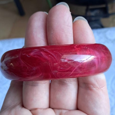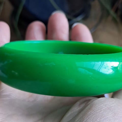 Retro armring i gul plast , indvendig diameter 6,7 cm .