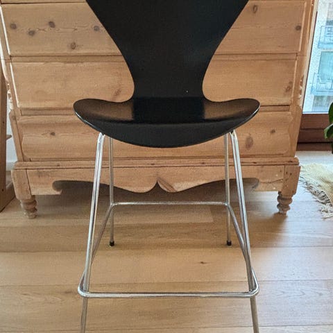 Fritz Hansen Arne Jacobsen barstol sort træ krom stel