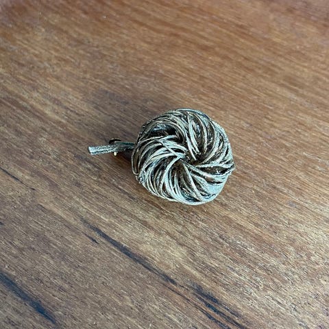 Guldfarvet broche med klare sten, 6,7 cm bred.