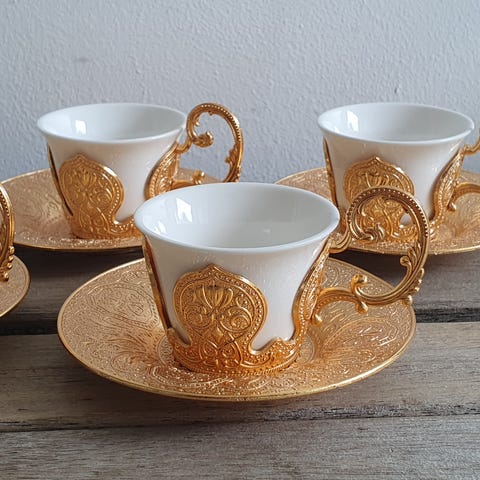 Smukke håndmalede kaffeglas fra Damaskus købt i SUQ Butiq v/forfatter Iselin Cosman Hermann, Nansensgade 41 i København.