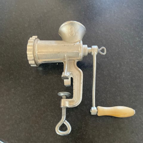 Kødhakker der hvil male kød (for eksempel til at lave Frikkedeller eller Krebinetter eller hamburgere) eller til at lave sine egne pølser. Den er udstyret med 3 skæresigter i rustfrit stål – en med 3 mm huller til fyld og paté, en med 5 mm huller til koteletter, burgere eller til at male små frø som valmuefrø og en med 7 mm huller til pølsefremstilling.