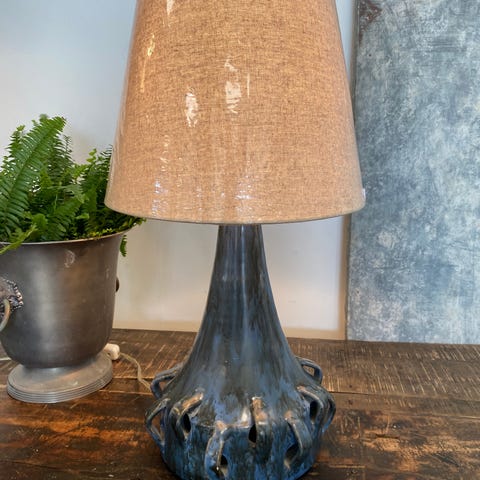 Kæmpe Knabstrup bordlampe.. en af de helt gamle, som har den helt rigtige patina. Den er SÅ smuk og helt unik. Her har den fået en helt klassisk pæn hør skærm. Mål H57,5 uden skærm og 63 med skærm. Ø17 pris på lampefoden 795,- og den nye hør skærmen 650,- #shopnlop #vintage #knabstrup #knabstruplampe #lampeskærm