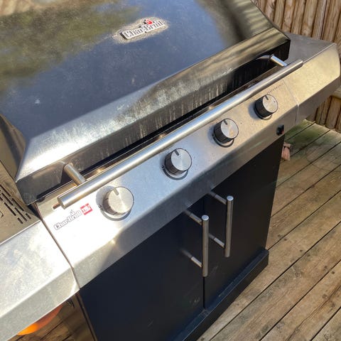 Ristene er rustne og bør skiftes. Ellers virker den fint. Gasflaske medfølger ikke.