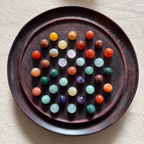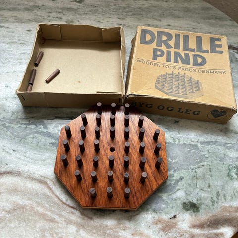 Gammelt spil , står som nyt , ingen ridser eller hakker,, er ikke helt sikker på om det er palisander eller teak