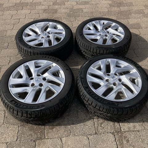 Et sæt passende til Honda CR-V. Dækkene har ikke kørt mange kilometer. Se billeder for stand og info. Fælge har en lille smule i lakken. Stadig rigtig pæne. Ref nr S371