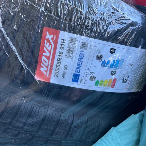 Stålfælge med monterede vinterdæk i størrelsen 205/60 R16. Fælgene er i stål og fremstår i sort. God stand og kun lidt slid.