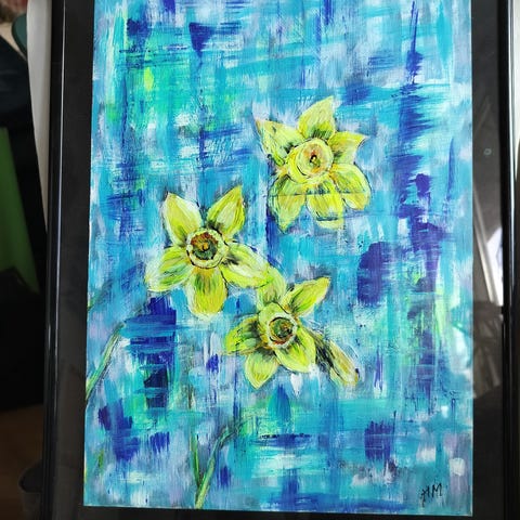 Maleri akryl på lærred blomster motiv