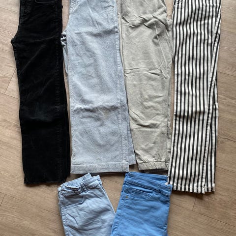 Bukser til drengen i str 140. I virkelig virkelig god stand. Flere af dem er det svært at se, at de har været brugt.
