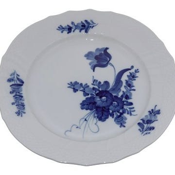 Royal Copenhagen Blå Blomst Svejfet, rund tallerken med helblonde kant. Den kan også bruges som underfad til frugtkurv nummer 10/1577.